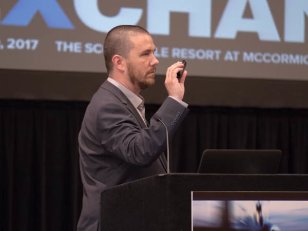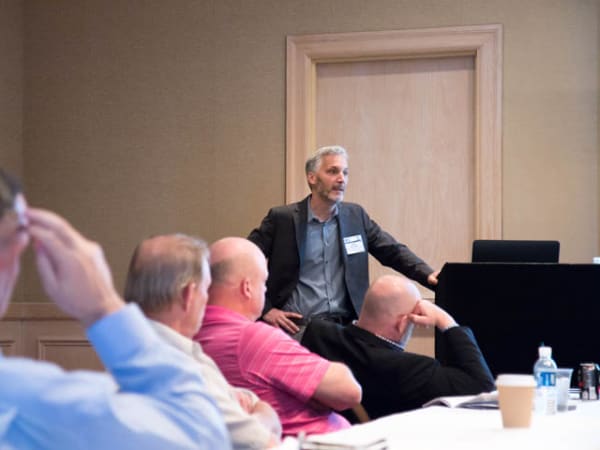 Motivational business speaker Tim Richardson challenges attendees to encourage people at their organizations to really think.