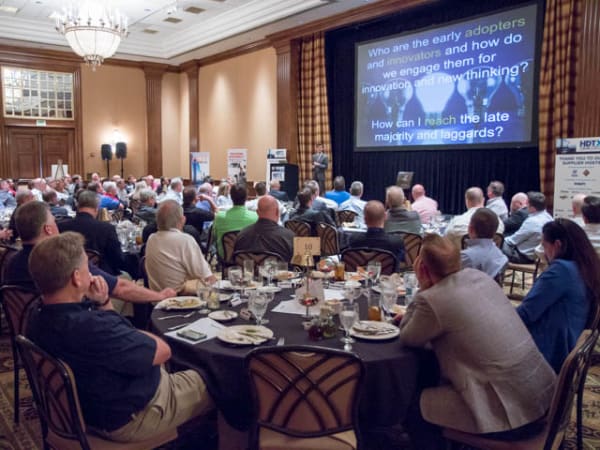 The more than 80 attendees of the inagural Heavy Duty Trucking Exchange were all smiles during the group photo.