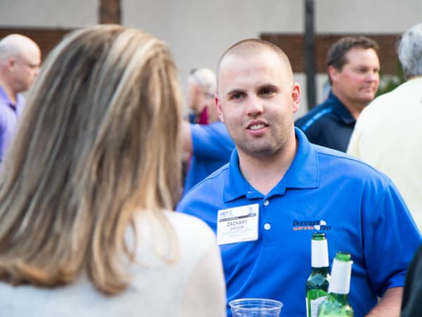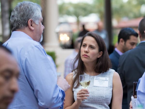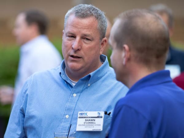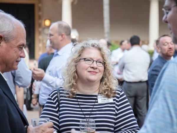 HDT Editor in Chief Deborah Lockridge talks to HDTX attendees during the first evening reception.
