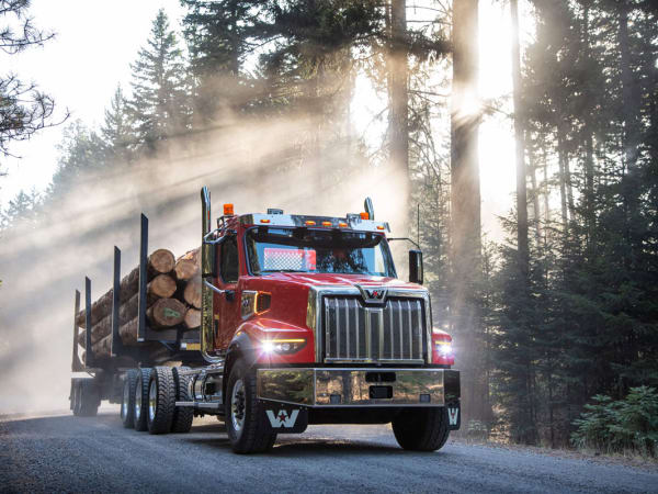 The Western Star 49X, available with a set-forward axle, is lighter than the 4900 for more payload.