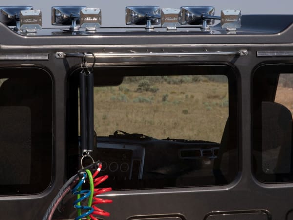 From the back of the Western Star 49X cab, you can see the three-piece windshield and the way the trough roof allows the cab to be higher over the doors without adding overall height to the truck.