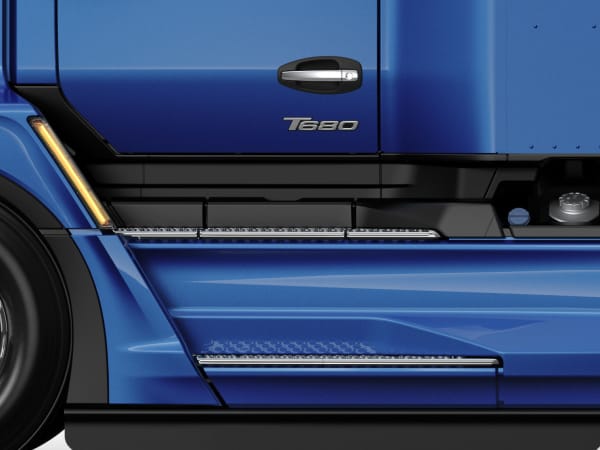 The T680 Next Generation features more stair-like entry steps and an LED turn indicator on the back edge of the fender.