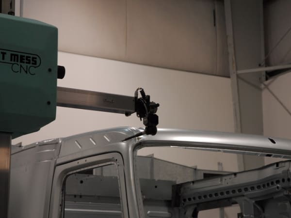 3. For quality control purposes, every so many cab assemblies are pulled from the line and measured by instruments to ensure consistency in the process. The probes measure to the millimeter.