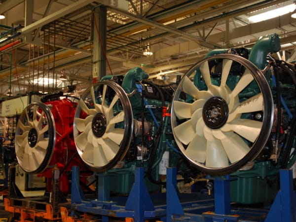 11. In yet another part of the plant, workers dress and prep the engines which are shipped in from Volvo's Hagerstown, MD engine plant or from Cummins in Jamestown NY.