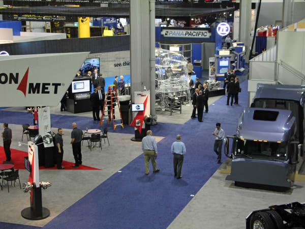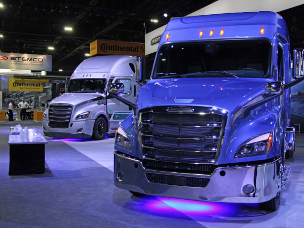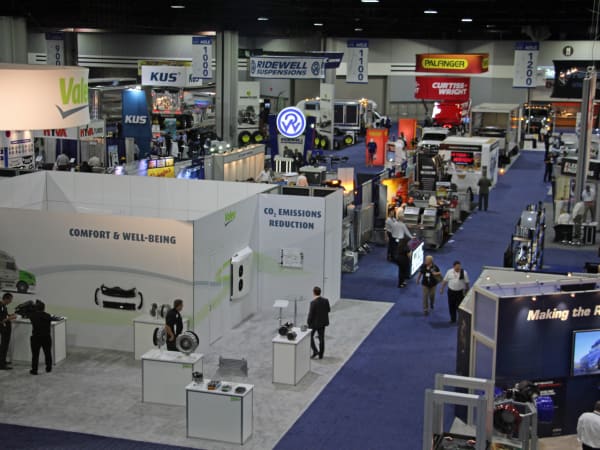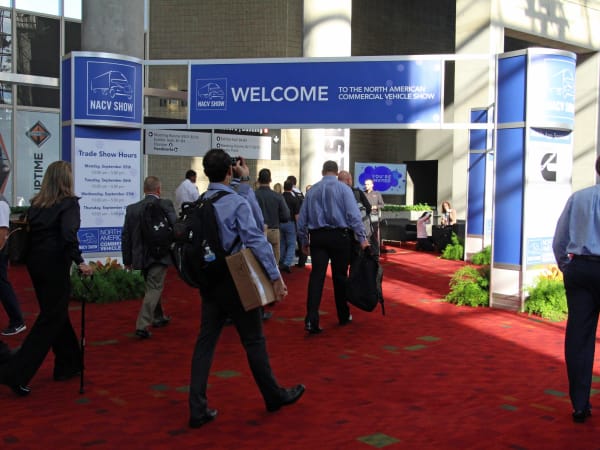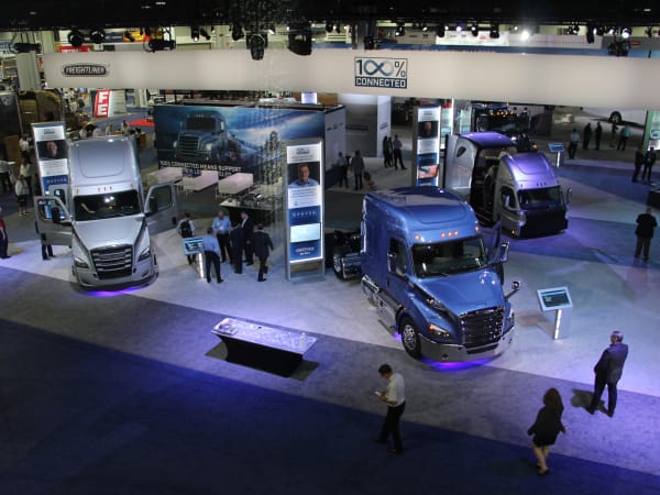 Daimler's booth was highly visible as attendees entered the show. Photo: Evan Lockridge