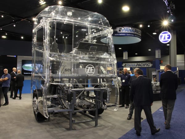 ZF demonstrated its latest technologies with virtual reality in this eye-catching "truck." Photo: Evan Lockridge