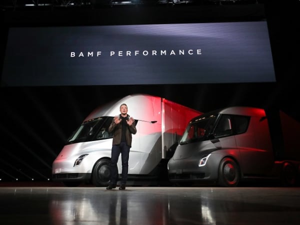 Musk says his new truck will be able to cruise 600 miles on a single battery charge. Photo: Tesla