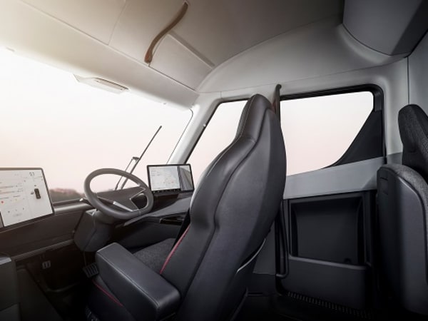 The cab features a center-mounted driver's seat, which Musk said gives superior visibility to the front and sides. Photo: Tesla