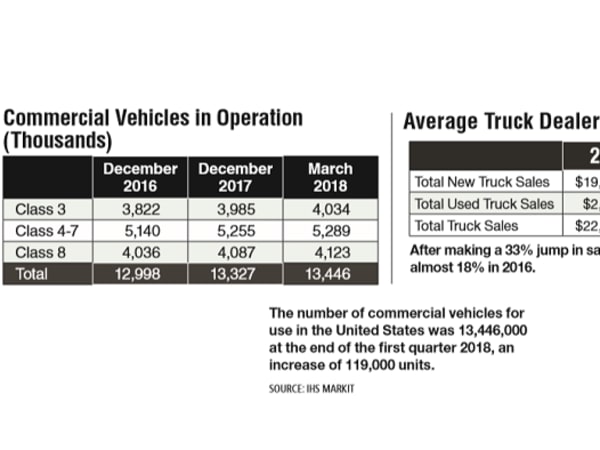 The number of commercial vehicles for use in the United States was 13,446,000 at the end of the first quarter 2018, an increase of 119,000 units.