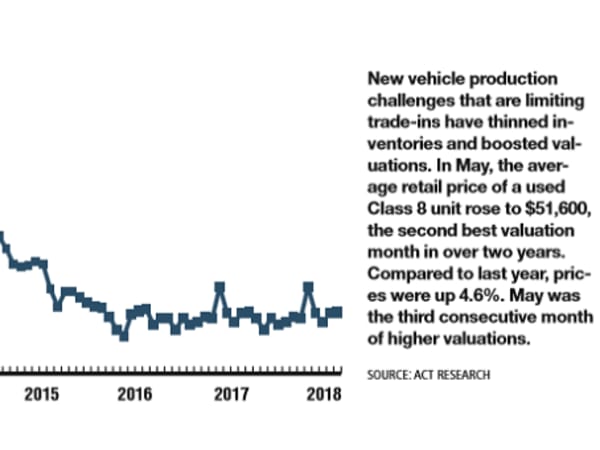 New vehicle production challenges that are limiting trade-ins have thinned inventories and boosted valuations.