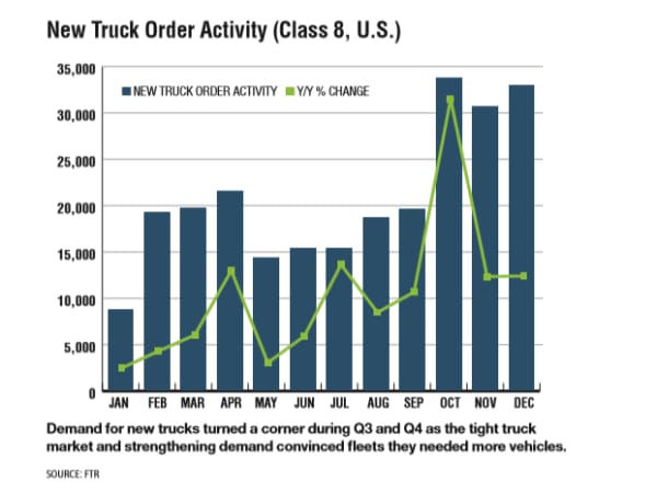 Demand for new trucks turned a corner during Q3 and Q4 as the tight truck market and strengthening demand convinced fleets they needed more vehicles.