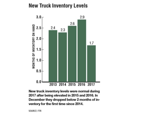 New truck inventory levels were normal during 2017 after being elevated in 2015 and 2016. In December they dropped below 2 months of inventory for the first time since 2014.