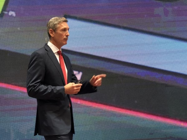Cummins CEO Tom Linebarger speaks to the press at IAA 2018 in Hannover, Germany.