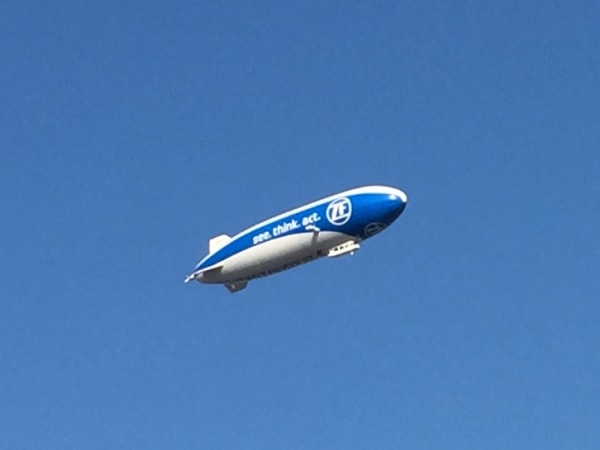 The ZF zeppelin over the Hannover fairgrounds where IAA is being held.