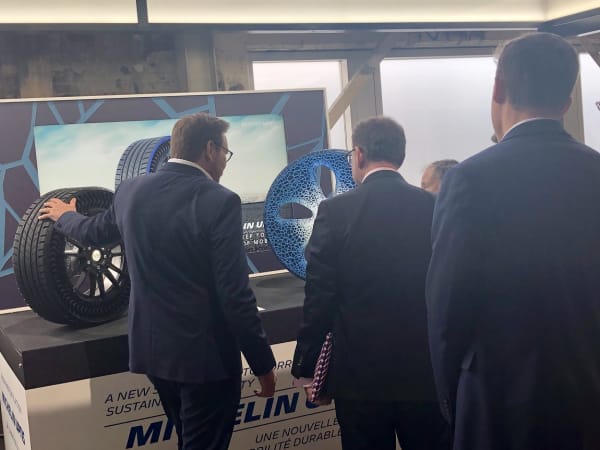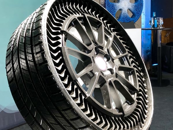 The big product news was Michelin's rollout of its Uptis "tweel" (unified tire + wheel) prototype for passenger cars that is airless and thus "puncture-proof."