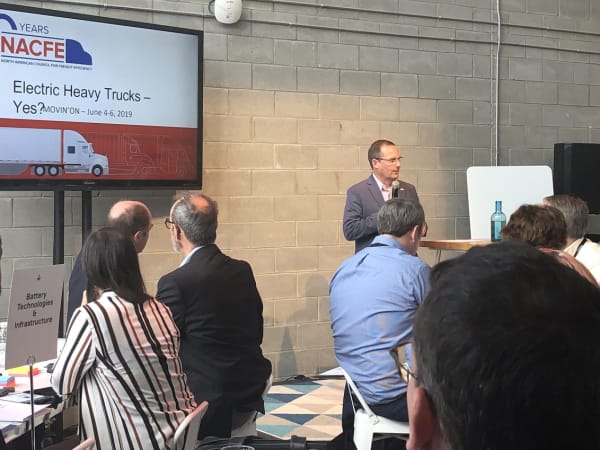 NACFE’s Mike Roeth kicking off a workshop aimed at uncovering roadblocks to upping the range of heavy-duty electric trucks, looking out to the year 2030.
