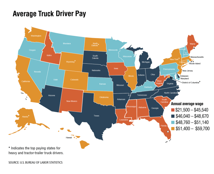 Federal statistics show the average annual wages of heavy and tractor-trailer truck drivers by state, as of May 2020 (most recent figures available). Compared to a year earlier, Minnesota and Nevada dropped out of the ranks of the highest-paying states, while California and Oklahoma moved up into that top tier.