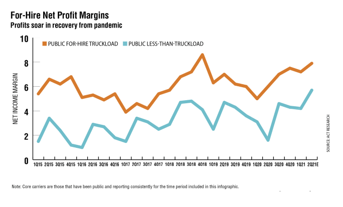 Despite the challenges of a driver shortage, scrambled supply chains, and new-equipment order backlogs — or perhaps in part because of those factors — conditions for making money in trucking have exploded since the lift of spring 2020 COVID-19 pandemic lockdowns.