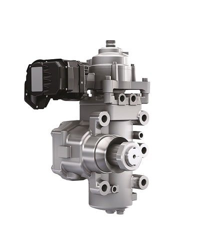 “The base hydraulic steering system does not change,” says Ulrich Bildingmaier, application engineering manager for commercial vehicles at Bosch. “The electric hardware includes a 12- or 24-volt electric motor, electronic control unit, yaw, torque and steering angle sensors, as well as a worm gear to amplify the output torque of the steering gear. If any of that should fail, the system reverts to full hydraulic. On the other hand, the electric system can intervene in the event of a hydraulic system failure, giving the driver limp-home capability.”
