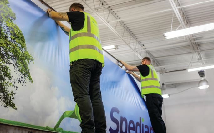 Installation times for the Spedian Changeable Graphics System require a two-person crew and typically take from 30 to 45 minutes.