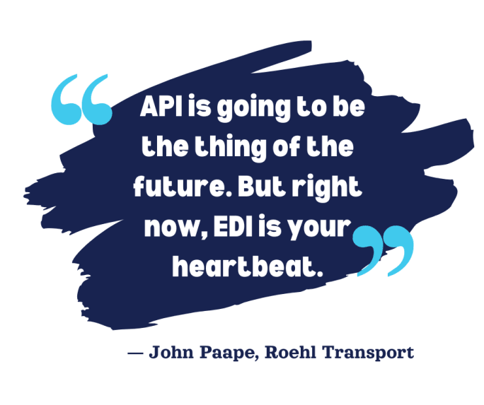 “So the lifeblood of most large carriers is that EDI, and API to some extent. API is going to be the thing of the future. But right now, EDI is your heartbeat.”