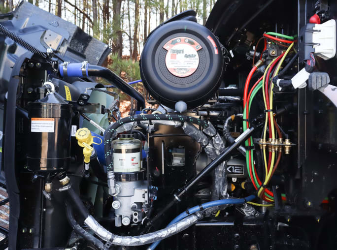 To that end, the Autocar DC is loaded with lots of sensible touches to give these trucks long, reliable, working lives and make them easy for drivers to work in and for technicians to work on. That includes features such as a long-life aluminum coolant reservoir, color-coded wiring for easy identification, coolant hoses that aren’t proprietary to make them simple and affordable to replace, and easy-access oil sample and fluid checks located right under the driver-side steps to the cab.