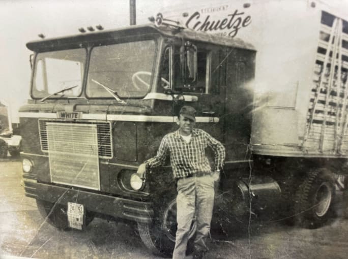 In 1950, Leonard Schuetze started Schuetze Livestock Transportation in West Point, Nebraska, with his wife LaVanda. He had served as a truck driver in the Army during World War II and was able to put those driving skills to use in civilian life.