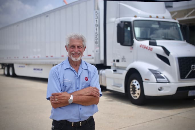 Louis Scaruffi, a 42-year veteran driver for C&S Wholesale Grocers, participated in NACFE’s Run on Less Regional in 2019. His truck-driver father taught him the importance of defensive driving techniques, many of which also help improve fuel economy. The 10 tractor-trailer combinations in the run averaged 8.3 mpg, compared to an industry average for regional trucks of around 6 mpg.