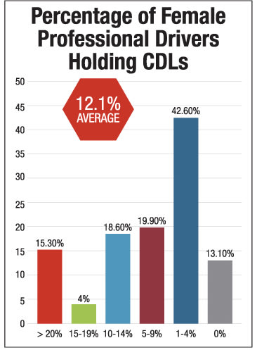 More than half of fleet respondents to the WIT Index had 4% or fewer women CDL drivers. About 15% had more than 20%.