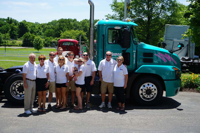 D.M. Bowman began in 1959 when Don Bowman started as an owner-operator with a used B 61 Mack tractor and trailer. Here the family gathers at the company's 60th anniversary celebration.