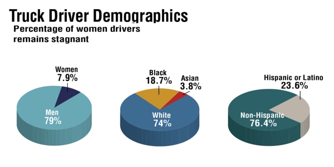 Women and Asian drivers continue to make the smallest percentage of the nearly 3.5 million people employed in 2021 under the occupation category of “driver/sales workers and truck drivers,” according to the latest data by the Bureau of Labor Statistics. Still, compared to 2020, the percentage of each demographic increased: Hispanic or Latino drivers 6%, Black drivers nearly 2%, and Asian and women drivers a mere .9% and .1%, respectively.