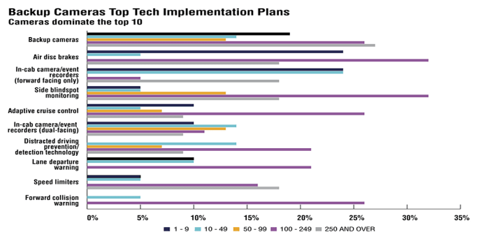 We asked our survey-takers about current safety technologies and what they’re planning to adopt. Nearly half already use speed limiters, and nearly one-fifth plan to implement backup cameras in the next year.