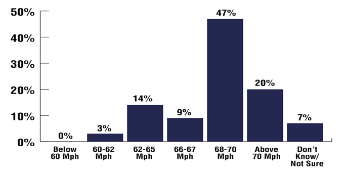The FMCSA recently opened a rulemaking on mandatory speed limiters. When asked what speed would make the most sense as a federal maximum, the overwhelming choice was 68-70 mph.