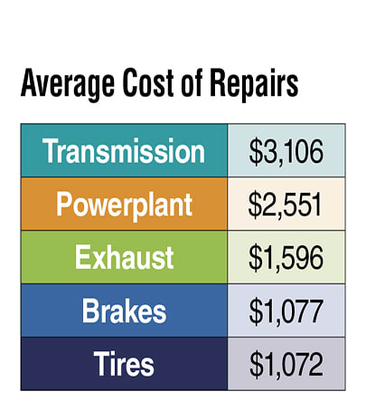 The Decisiv SRM Ecosystem tracks service and repair events for more than 7 million assets, recording the average costs of parts and labor for repair of systems linked to the Vehicle Maintenance Reporting Standards. Transmission repairs were by far the most expensive in terms of parts ($2,039) and labor ($1,067).
