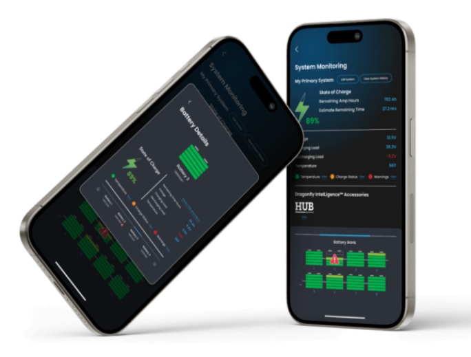 Dragonfly IntelLigence technology for heavy-duty trucking lithium power systems is a patent-pending smart battery technology that gives fleets and truck drivers real-time system monitoring and app-based connectivity, providing full visibility over their battery system.