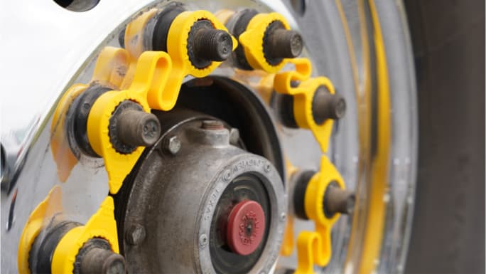 Lug Linx indicates lug nut movement while acting as a retainer. It provides a quick visual indication of loose lug nuts for faster pre-trip and post-trip inspections.