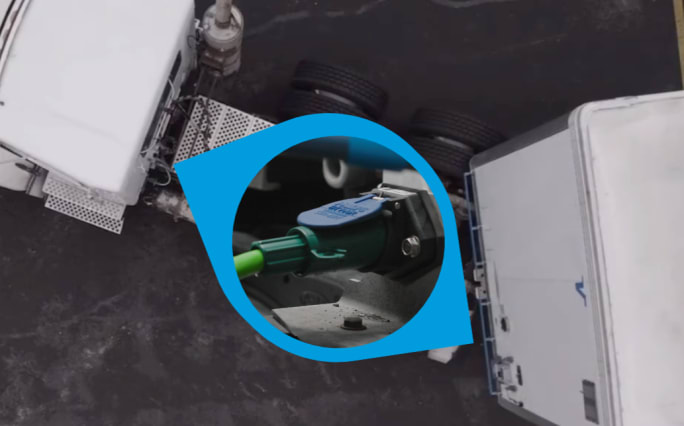 With a push of a button in the cab, Auto Connect couples the pneumatic airlines, electrical lines and the CAN bus or other communication wiring required to operate a wide variety of sensors and cameras.