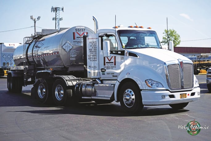 In 2018, Hazmat Environmental Group replaced fluorescent lighting in offices and shops with LED lighting. Its last 109 tractors were spec’ed with wide-base single tires to improve fuel economy and cut weight, Espar heaters, auxiliary power units, and wind fairings, averaging 7.34 mpg fleetwide compared to the previous-spec tractors at 6.53. New van trailers are equipped with skirts, nose cones, and spray on liners. Replacing steel plating in its last 40 dry vans with Gatorhyde cut weight by 2,000 pounds.