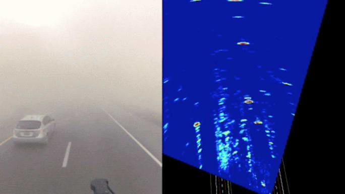 Radar doesn’t provide an accurate image of the road ahead, but it’s very good at object detection, including identifying the speed of the object and the distance from the truck.