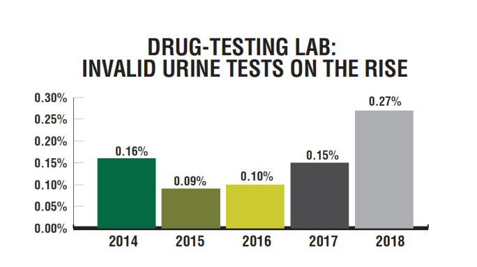 Quest Diagnostics reported earlier this year a rise in urine specimens reported as invalid suggest more efforts to cheat.