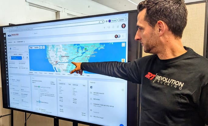 Kevin Bemiller, Revolutions' VP of Logistics, shows how Revolution uses a cutting-edge transportation management system to closely manage high-speed, high-value, high-risk shipments.