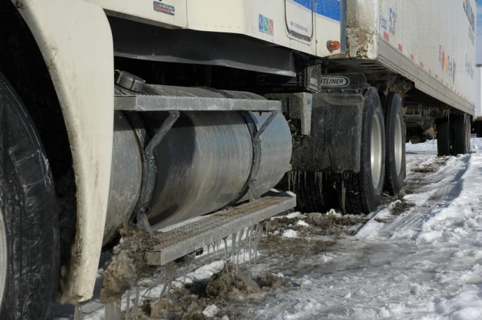 You can lessen your chances of being struck down by humble ice crystals by draining or vacuuming the water from your fuel tanks, both on board the truck and in the yard.