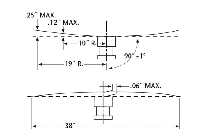 1. Using a 48-inch straight edge or a large metal right angle square, check the upper coupler plate flatness in all directions as shown in Figure 1. Any bumps, valleys, or warping will cause uneven loading of the fifth wheel, which could result in damage to the top plate and reduce lock life. If flatness exceeds the specifications as shown in Figure 2, replace the trailer upper coupler plate.