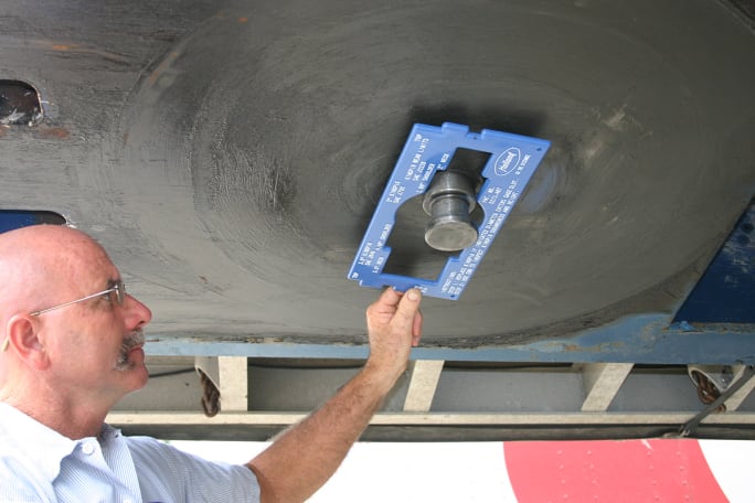3. The kingpin must be the proper length to couple properly with a fifth wheel. Using a Holland Kingpin Gage, check the length of the kingpin for proper length as shown in Figure 3. A long kingpin will result in excessive wear in the locks and coupling difficulty. A short kingpin will accelerate lock wear and may interfere with fifth wheel coupling. If either condition exists, replace the kingpin.
