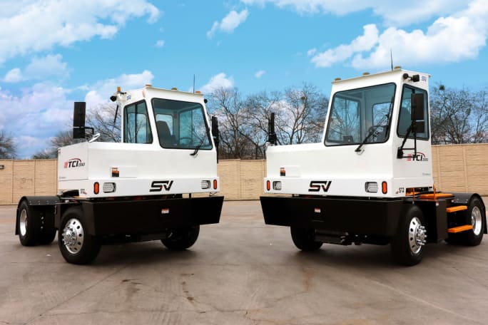 Some of TCI’s Lonestar S22 electric yard tractors.