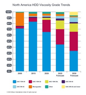 SAE 15W-40 had been the workhorse viscosity grade for many years, but it has peaked and is forecasted to decline to around 30% by 2029.