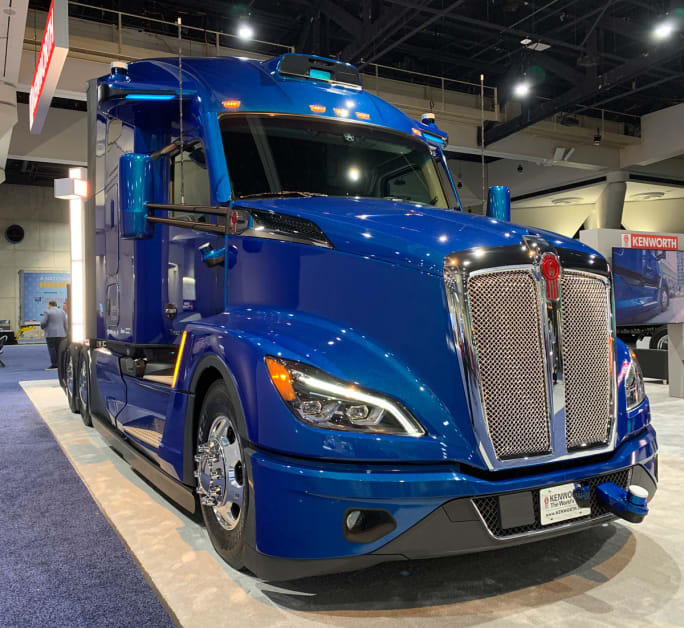 Kenworth showcased a T680 tractor fitted with Aurora Drive autonomous controls at its booth at the American Trucking Associations' annual management conference.