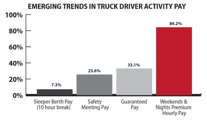 That’s why in addition to mileage pay, companies are increasingly paying an hourly wage or flat additional compensation for duties even if the wheels aren’t turning. NTI calls that activity pay, and Shaver cites examples such as pay for loading/unloading and for inclement weather delays.
