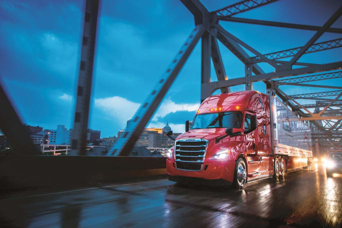 Brent Nussbaum, CEO of Hudson, Illinois-based Nussbaum Transportation, says the regional and nationwide truckload carrier writes one spec for its fleet of 400 tractors, which run over the road as well as handle short-haul freight and are on a four-year trade cycle. “We found what works for us. We primarily have Freightliner Cascadias that are powered by a 15L Detroit engine with a 12-speed Detroit automated transmission and are set up as 6x2 units.”