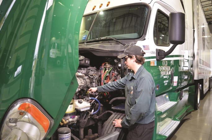 At Old Dominion Freight Lines (left), conducting preventive maintenance properly is considered a key way “to address anything that can impact fuel economy as quickly as possible,” says Chris Harrell.
